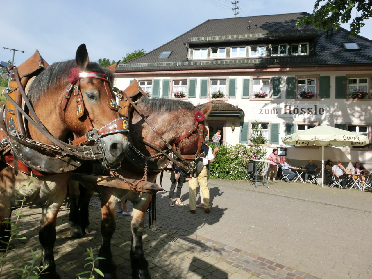 An den sonnigen Hängen des Schauinslandes, am Fuße der barocken Klosteranlage und umgeben von Wald, Bächle und Wiesen, liegt unser Gasthaus zum Rössle.