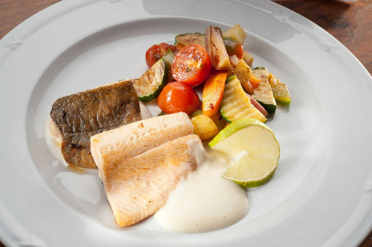 Gebratene Schwarzwälder Forellenfilets mit beurre blanc | gebratenes Gemüse | Würfelkartoffeln