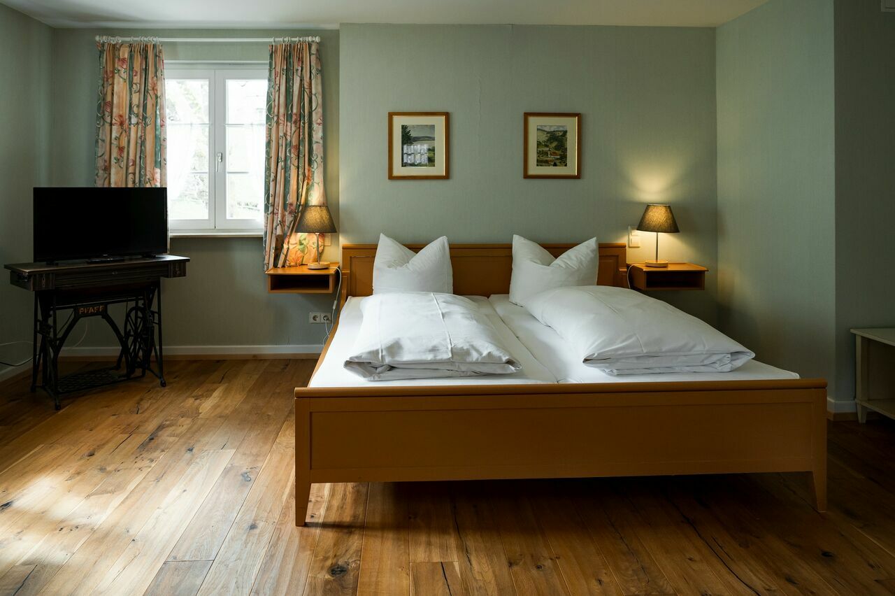 Die ruhige Lage umgeben von Wald und Wiesen sorgt für einen geruhsamen Schlaf in unserem Hotel. Lassen Sie sich sanft von dem Rauschen der Möhlin in den Schlaf wiegen und genießen Sie den Komfort, den unsere liebevoll eingerichteten Doppelzimmer zu bieten haben.